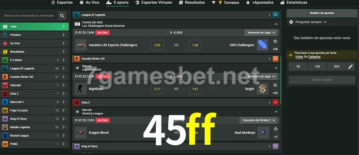 O 45ff oferece uma grande seleção de opções de apostas em e-sports com probabilidades competitivas